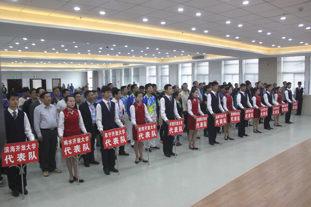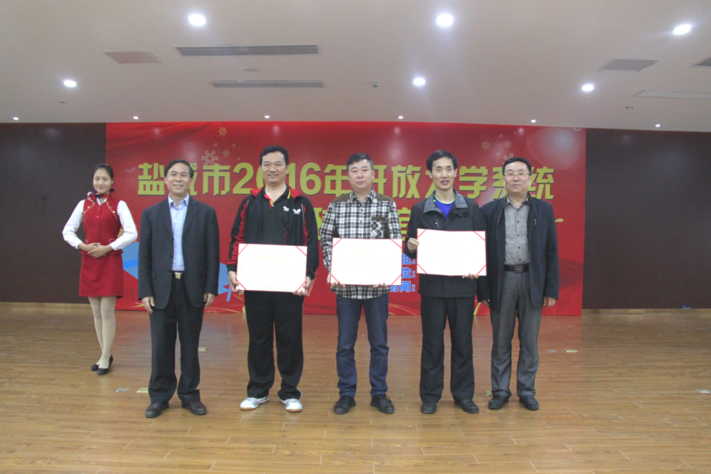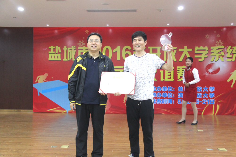 盐城市2016年开放大学系统乒乓球友谊赛5月21日上午在滨海开放大学隆重开幕,盐城开放大学书记吕祥致开幕词,滨海县教育局左其安局长到场祝贺并致辞,盐城开放大学校长杨怀祥宣布友谊赛开幕。本次友谊赛共有12支代表队参赛,他们分别是:滨海开大代表队、大丰开大代表队、东台开大代表队、阜宁开大代表队、建湖开大代表队、亭湖开大代表队、射阳开大代表队、响水开大代表队、盐都开大代表队、盐城开大代表队、盐城市职社学会代表队、盐城建校开放部代表队,各开大的主要校领导和开放教育负责人参加本次友谊赛。本次比赛特邀了盐城市职社学会代表队,标志着我市开大系统与盐城市职社学会联系更加紧密,将对全市开大系统社区教育工作的开展起到很好的支撑和促进作用。赛场上球员们交流球技,赛场下他们共叙友谊、交流办学经验、共商开放大学发展大计,球馆内喝彩声、欢笑声此起彼伏。经过激烈的争夺,大丰开大代表队获得比赛第一名赢得了冠军杯,滨海开大代表队、建湖开大代表队、盐城开大代表队荣获比赛一等奖,射阳开大代表队、东台开大代表队、亭湖开大代表队和阜宁开大代表队荣获比赛二等奖,其他代表队都荣获三等奖。比赛结束后举行了颁奖仪式,颁奖仪式由滨海开放大学校长皋建军主持,市职社学会副会长茆艾磊、盐城开放大学校领导和部分县(市、区)开大校领导分别为获奖代表队颁奖,友谊赛在热烈的掌声中圆满结束。