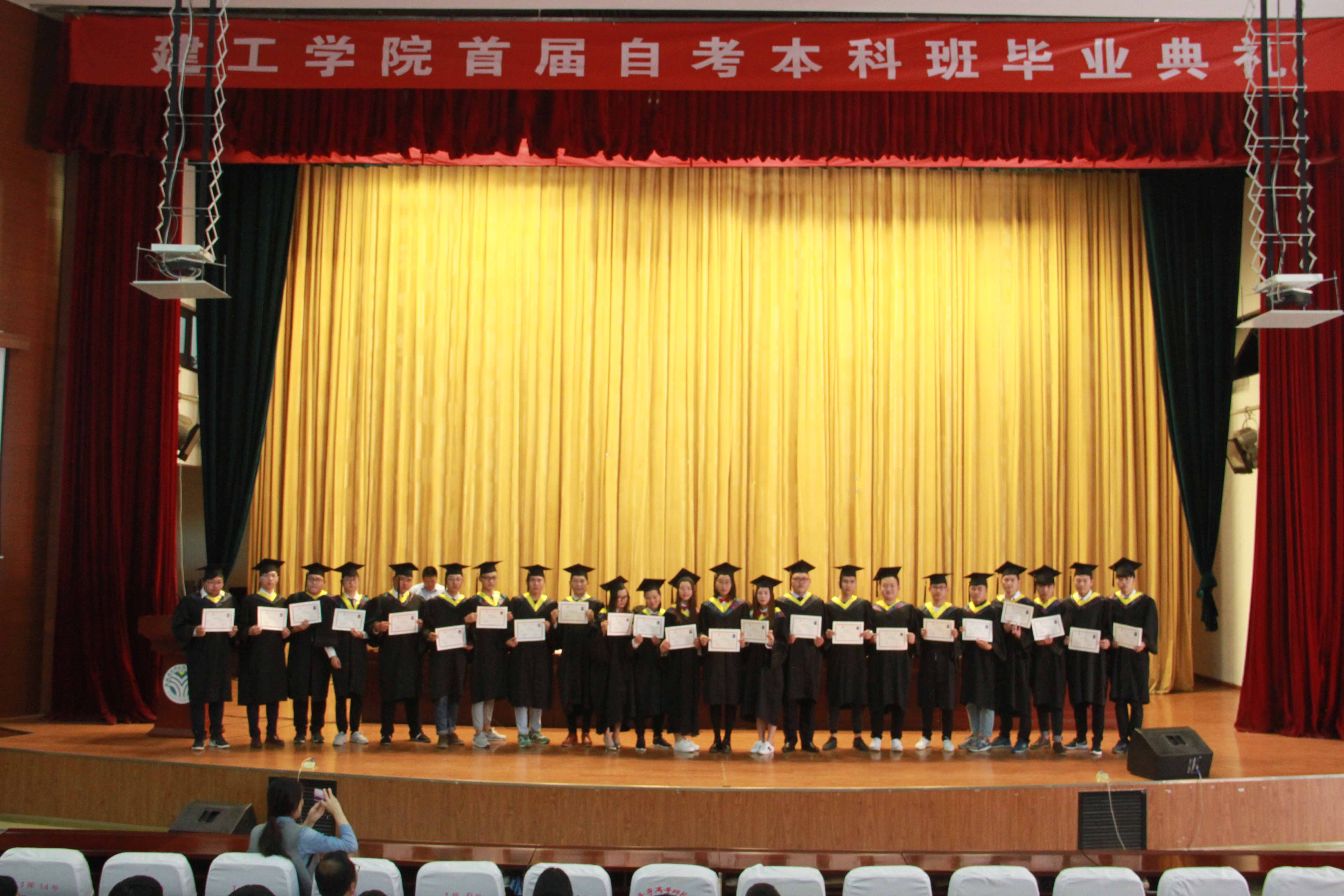 毕业典礼由该校建工学院负责人周加林主持,校领导孙永龙宣读毕业生名单,校领导朱成良宣读学士学位名单。校党委书记刘毓航为毕业生颁发毕业证书,并与他们合影留念。