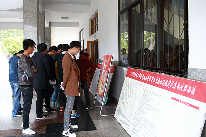10月15日下午,我校2017年成人高等教育改革项目自主招生考试顺利进行,1901名专升本考生参加本次考试。 考试期间,江苏省考试院成招处计划科科长嵇春、盐城市考试院院长邵卫民等在我校继续教育学院院长杨怀祥的陪同下巡视了整个考区。省市巡视组对我校自主招生考试的组织工作给予了高度评价,认为本次考试组织机构健全,安全保密工作到位,考风考纪整体良好。 今年是我校第四次组织成人高等教育改革项目自主招生考试。10月22日起,我校将进入自主招生选拔考试评卷环节,成绩预计将于2017年10月底公布。