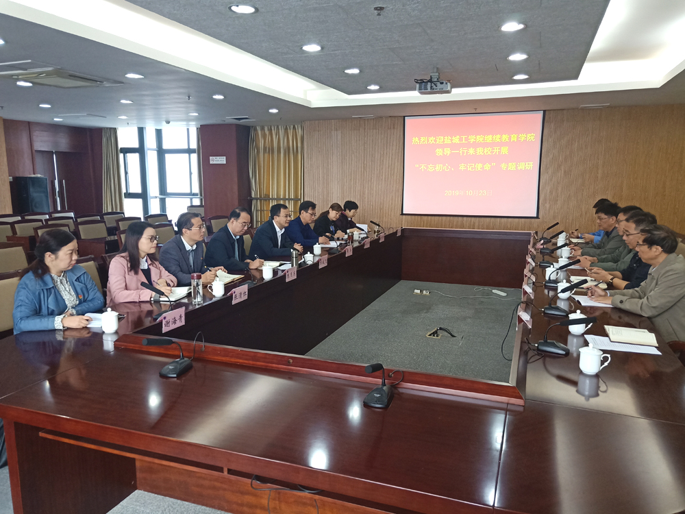 在江苏省盐城技师学院,校长张兵、副校长李成飞等8位同志与我院调研组成员进行了广泛交流。技师学院同志回顾了与我院长期开展成人函授教育的历史,希望两校拓展合作办学领域,介绍了目前继续教育信息化平台使用现状,希望我院平台建设中加强学习资源建设,实现线上、线下考核相结合,方便学生工作后继续进行学习,期望信息化管理平台能提供毕业设计资料查询。