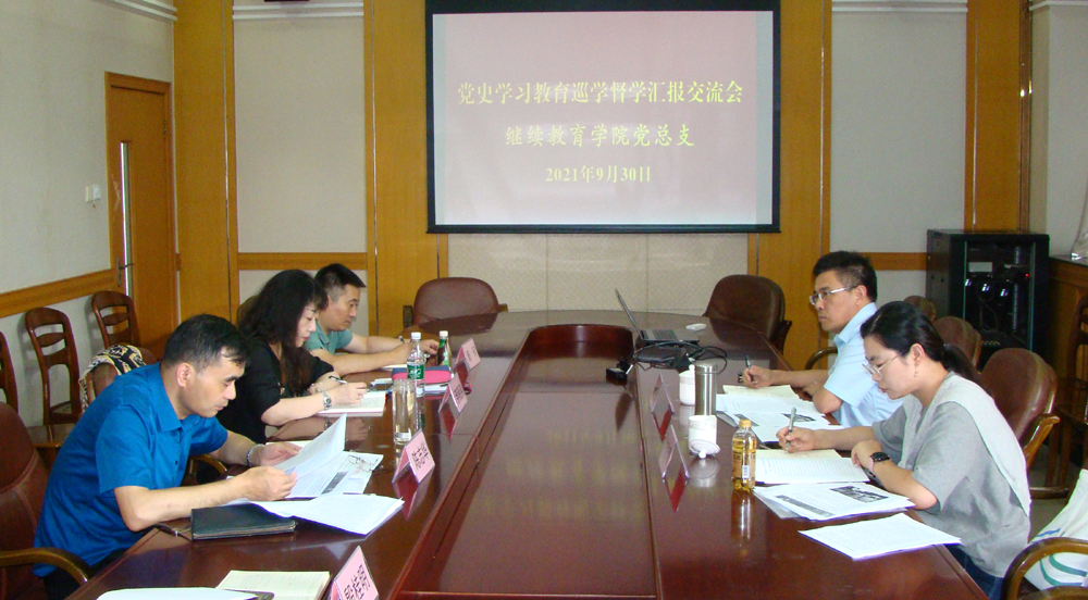 2021年9月30日下午,在北校区图书馆301会议室,我院接受学校党史学习教育第四指导组组长朱志勇、副组长熊璐璐巡学督学。院党总支书记陈志华、副院长李晓燕、教工支部书记秦珂、党政办主任殷桂明参加。