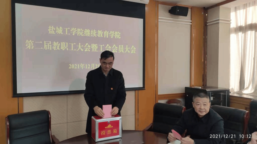 2021年12月21日上午10:00,继续教育学院在建军东路校区图书馆301会议室召开第二届教职工大会暨工会会员大会。大会选举产生了盐城工学院第五届教职工代表大会暨第五届工会会员代表大会代表、继续教育学院教职工大会执行委员会和分工会委员会委员,大会由我院副院长李晓燕主持。