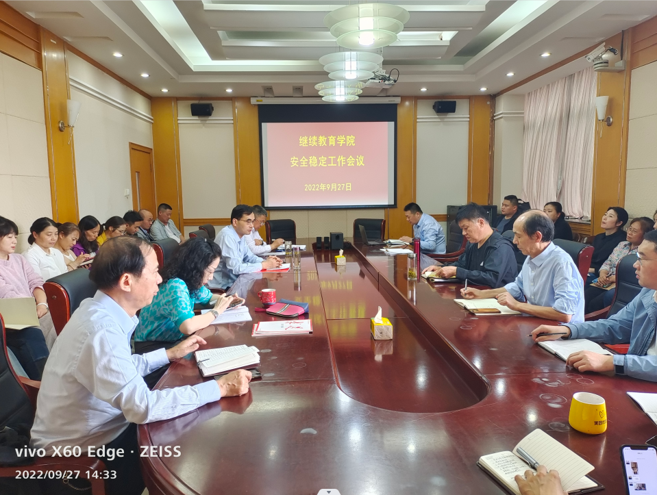 9月27日下午,在北校区图书馆301会议室,学院召开安全稳定工作专题会议,学院党总支书记、院长陈志华主持,学院全体职工参加。