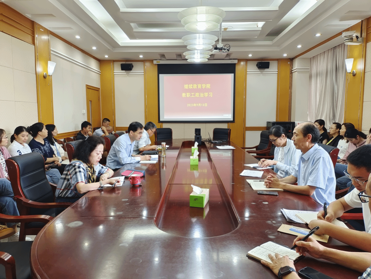 9月13日下午,在北校区图书馆301会议室,学院开展教职工政治学习活动,党总支书记、院长陈志华主持,全体职工参加。