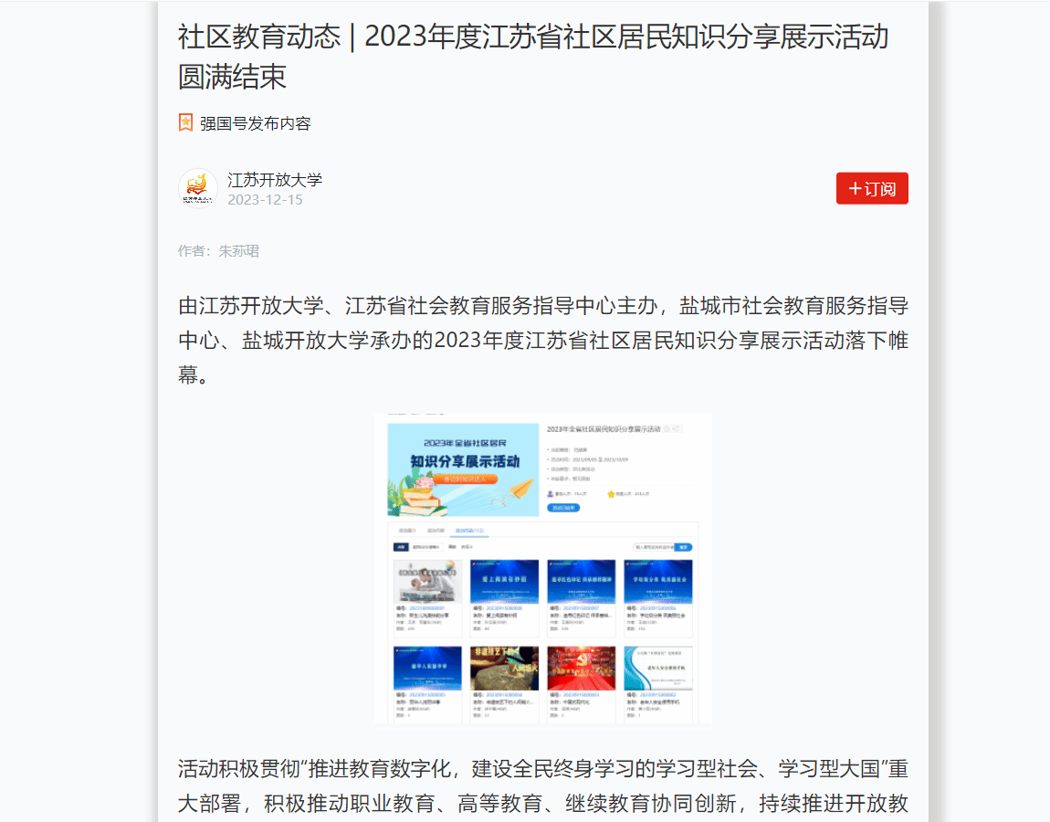 学习强国报道链接:社区教育动态 | 2023年度江苏省社区居民知识分享展示活动圆满结束