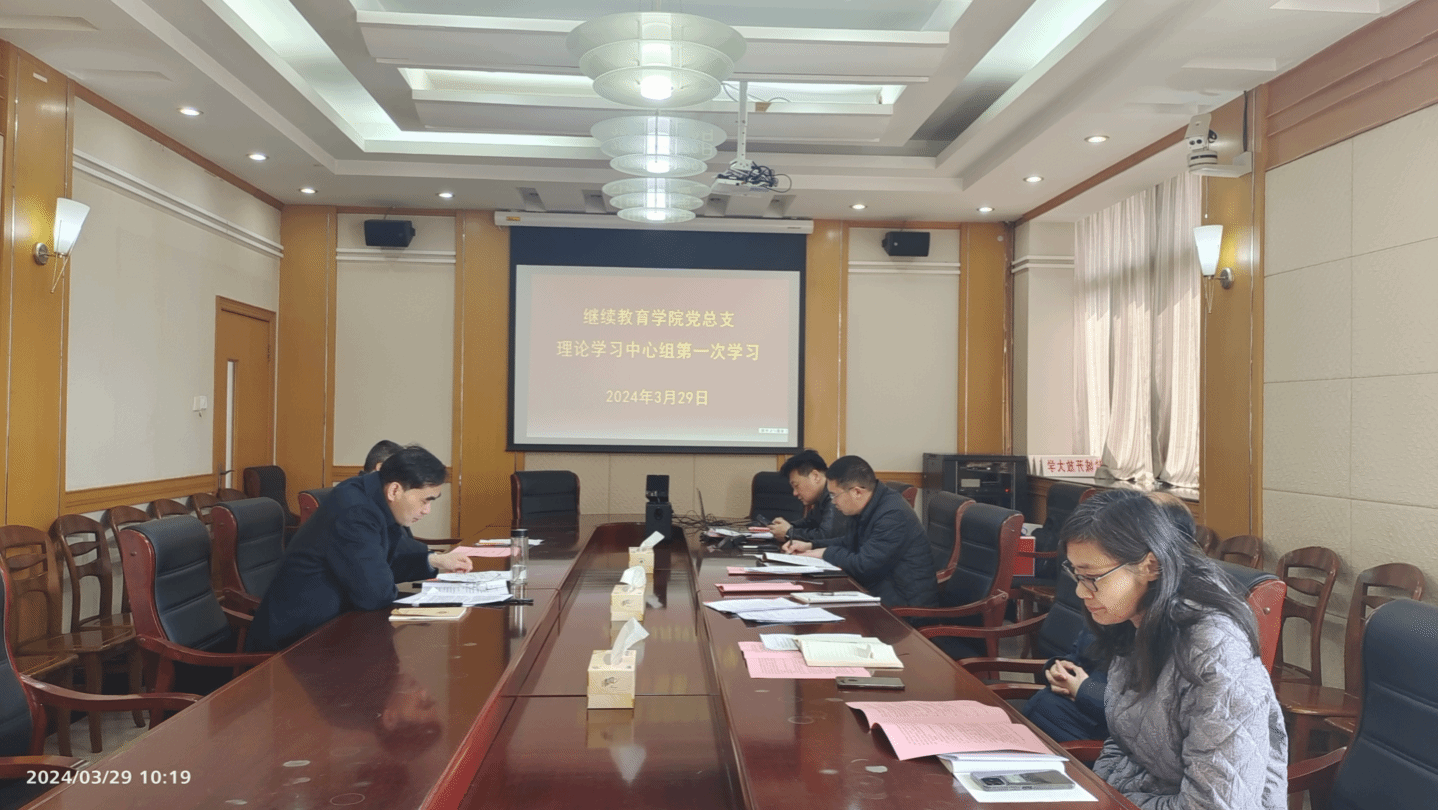 2024年3月29日上午,在北校区图书馆301会议室,学院中心组开展春学期第一次集中学习。学院党总支书记、院长陈志华主持,中心组成员参加。