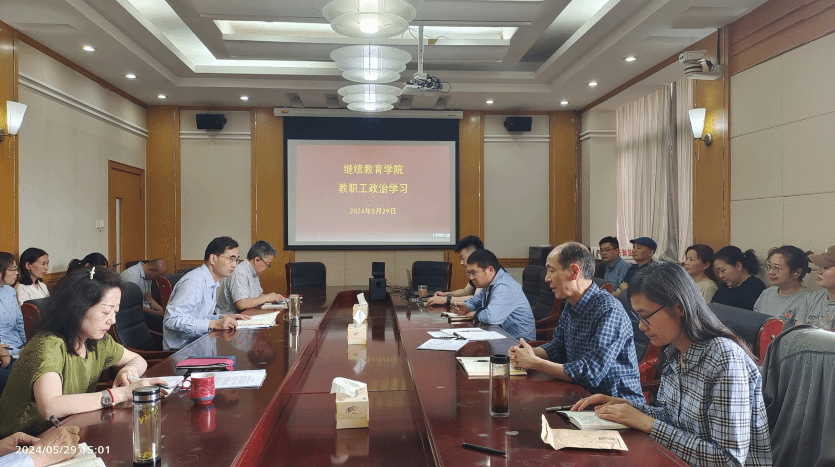 5月29日下午,在北校区图书馆301会议室,学院开展春学期第五次教职工政治学习活动,党总支书记、院长陈志华主持,全体职工参加。