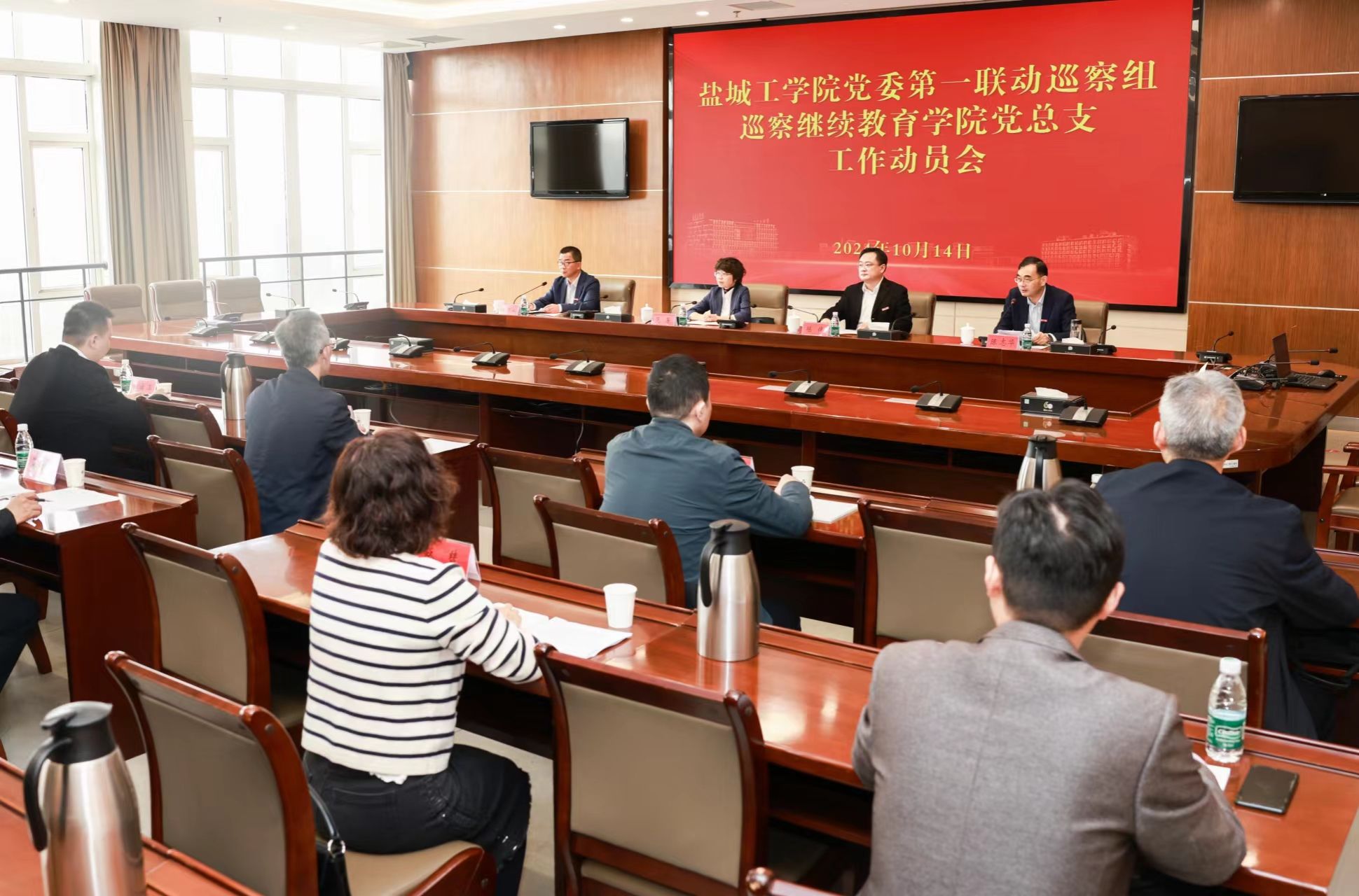10月14日上午,在希望大道校区行政楼九楼会议室,校党委第一联动巡察组召开巡察继续教育学院党总支工作动员会。省委第七巡视组副组长范芳,校党委常委、纪委书记、省监委派驻监察专员、巡察工作领导小组副组长陈伟出席会议,党委第一联动巡察组组长于建业、副组长孟鑫及巡察组全体成员,继续教育学院全体教职工参加会议。