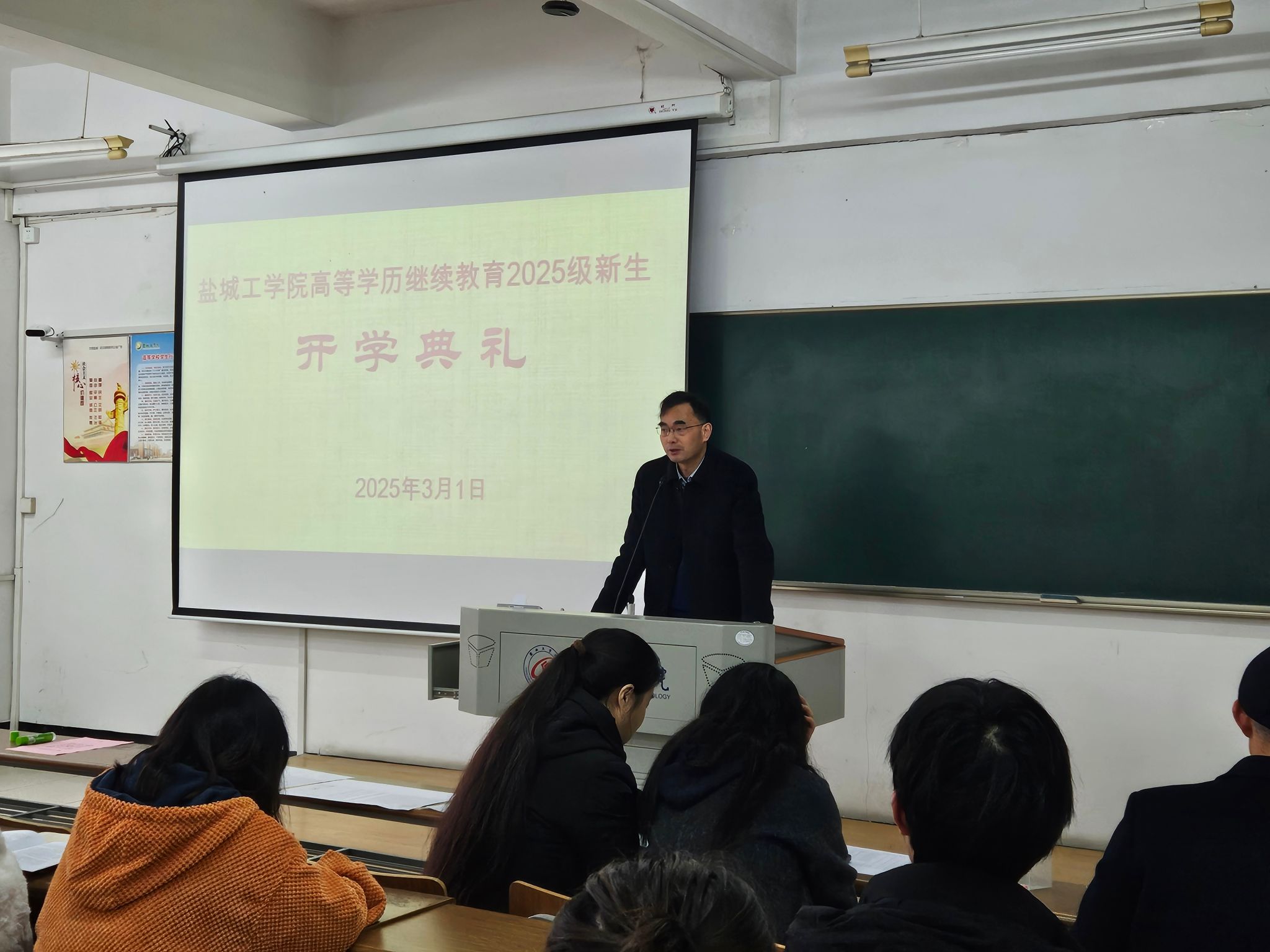 2025年3月1日上午,我院在北校区图书馆102教室举行我校高等学历继续教育2025级新生开学典礼及入学教育,院长陈志华出席并讲话,开学典礼由副书记、副院长杨军主持,教师代表、校工会原主席谢毅敏,继续教育学院原副院长夏金海,新生班主任及2025级新生共150余人参加。