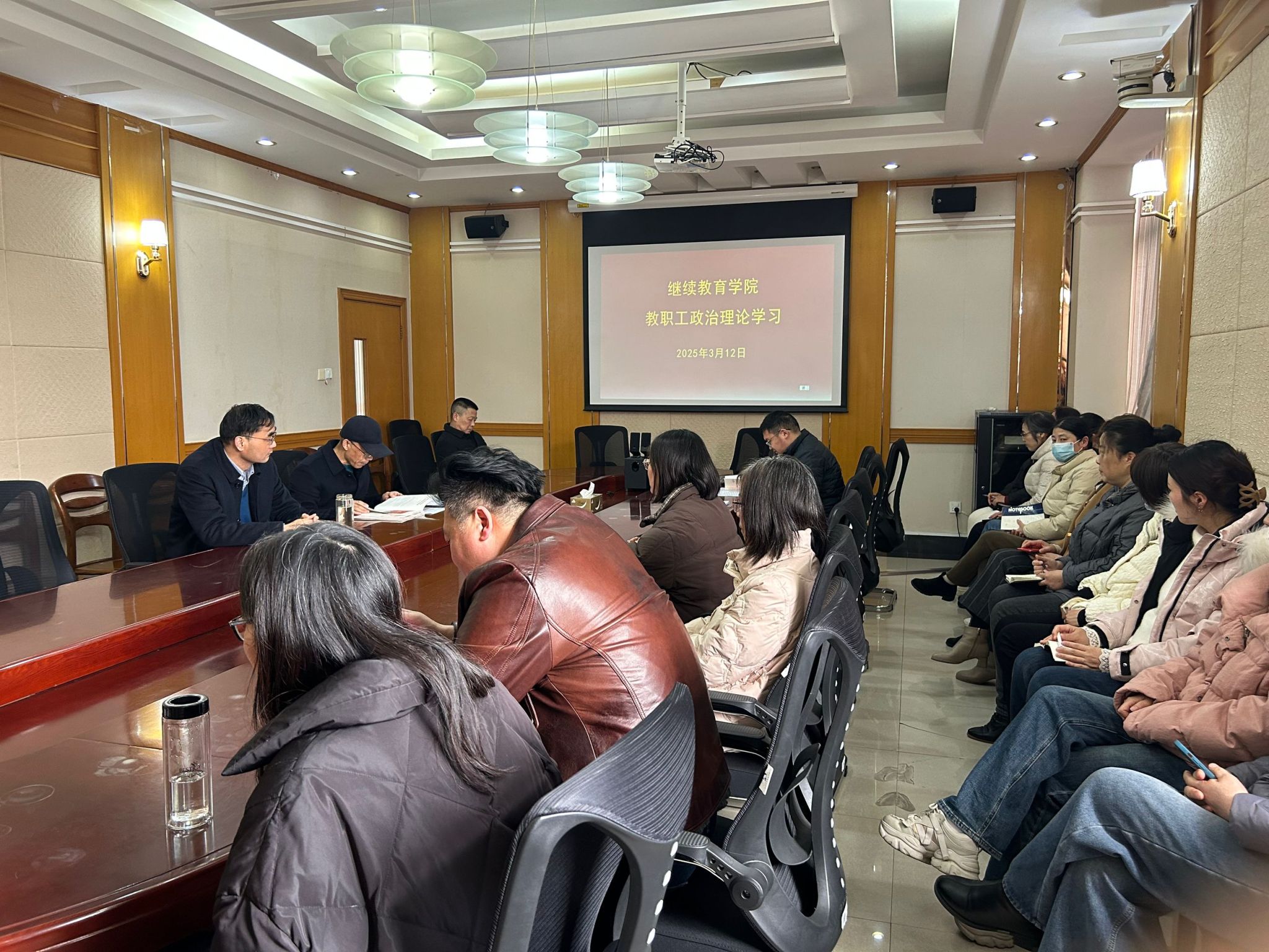 3月12日下午,在北校区图书馆301会议室,继续教育学院开展春学期第二次教职工政治理论学习,会议由党总支副书记、副院长杨军主持,全体教职工参加。