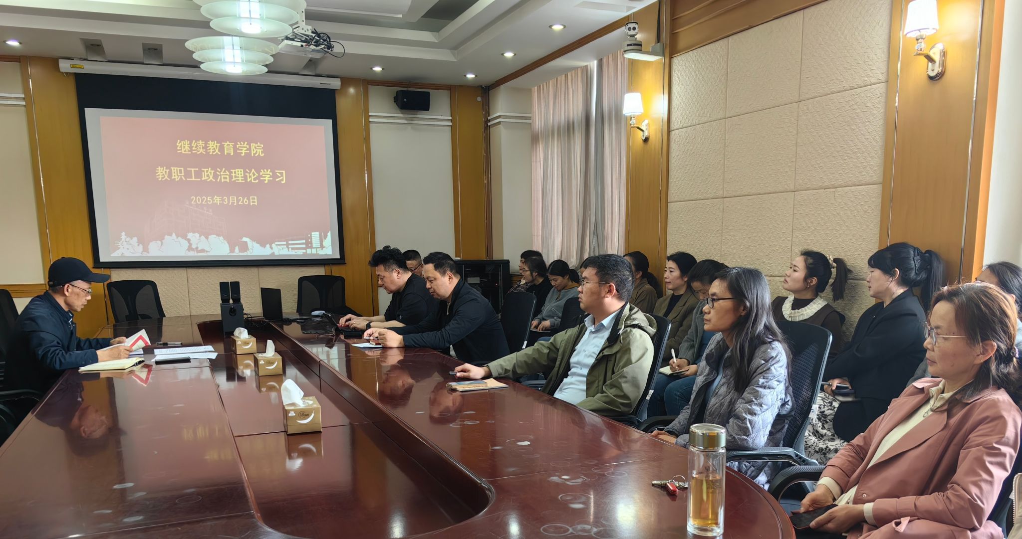 3月26日下午,在北校区图书馆301会议室,继续教育学院开展春学期第三次教职工政治理论学习,会议由党总支副书记、副院长杨军主持,全体教职工参加。