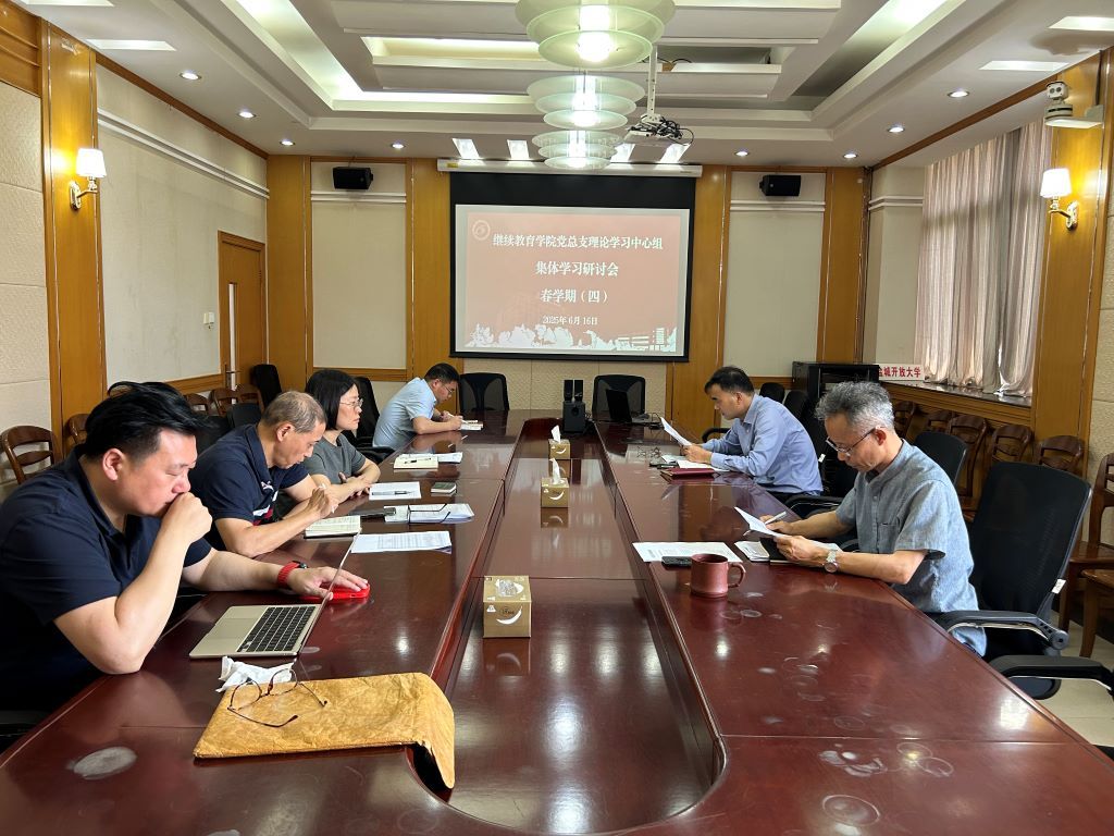 6月16日上午,在北校区图书馆301会议室,继续教育学院党总支理论学习中心组召开集体学习研讨会。党总支副书记、副院长杨军主持会议,党总支理论学习中心组成员参加。