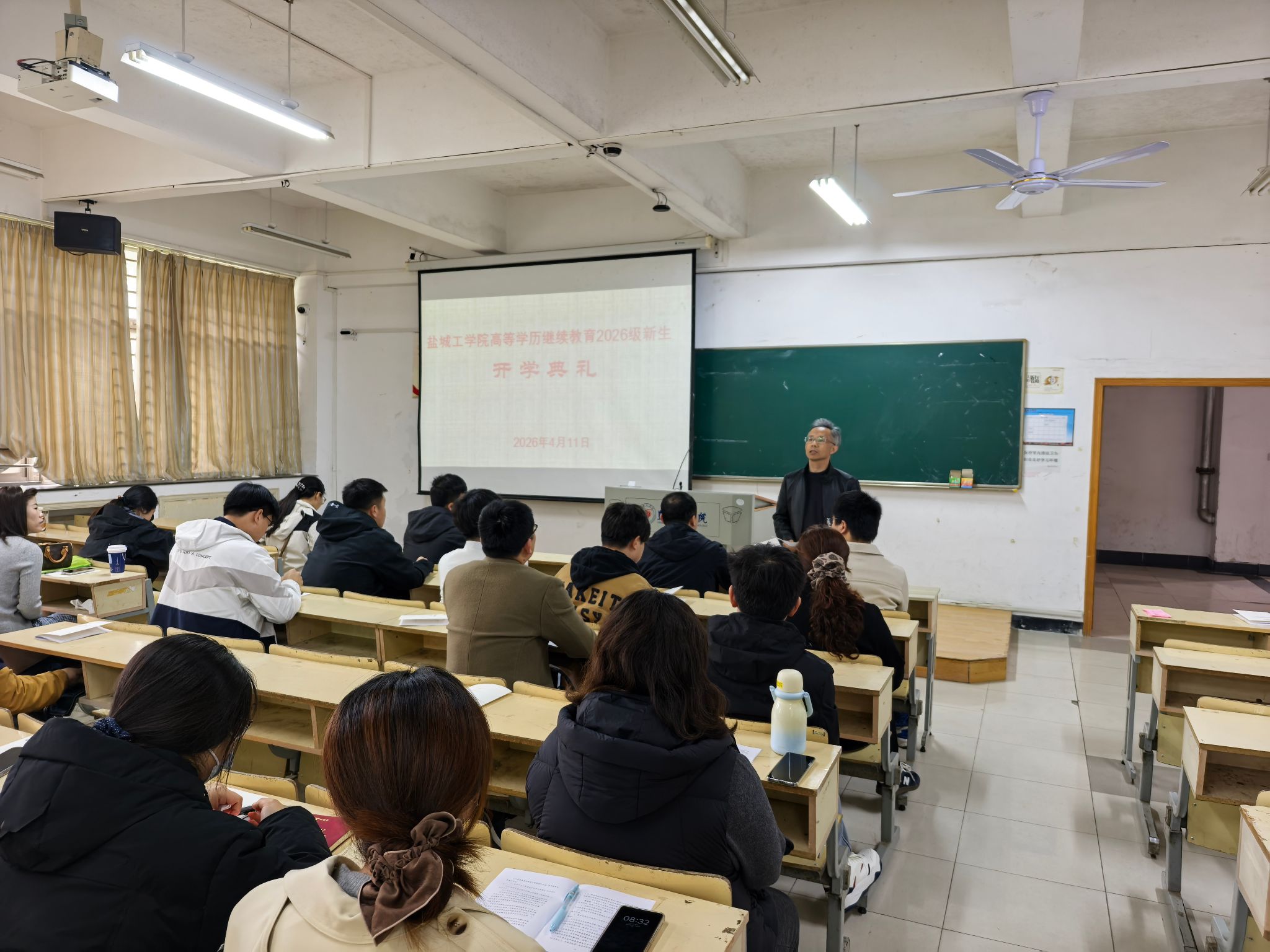 2026年4月11日上午,我院在北校区图书馆101教室举行我校高等学历继续教育(非脱产)2026级新生开学典礼及入学教育,院长陈志华出席并讲话,开学典礼由副书记、副院长杨军主持,教师代表、继续教育学院原副院长夏金海,新生班主任及2026级新生约100余人参加。