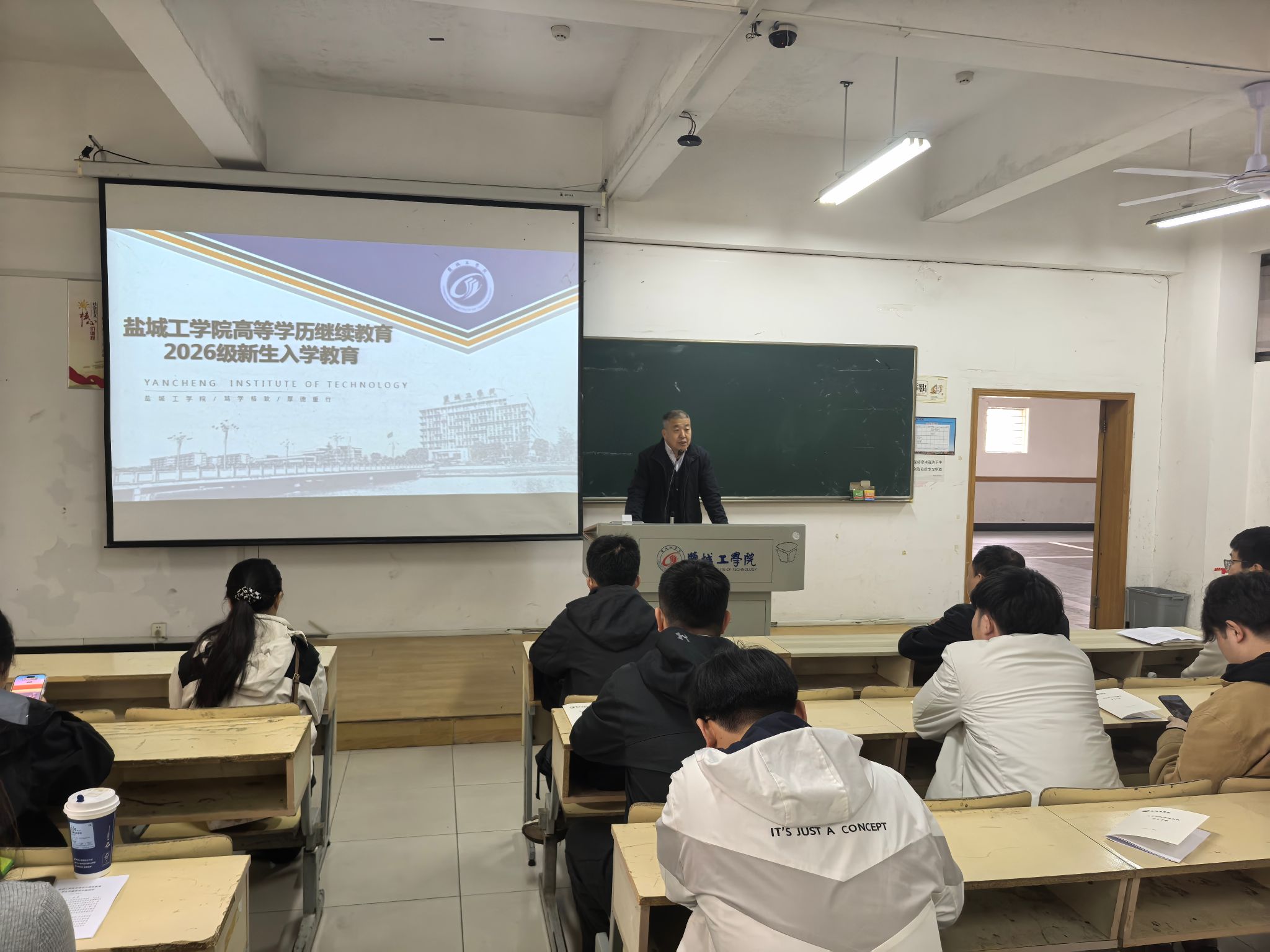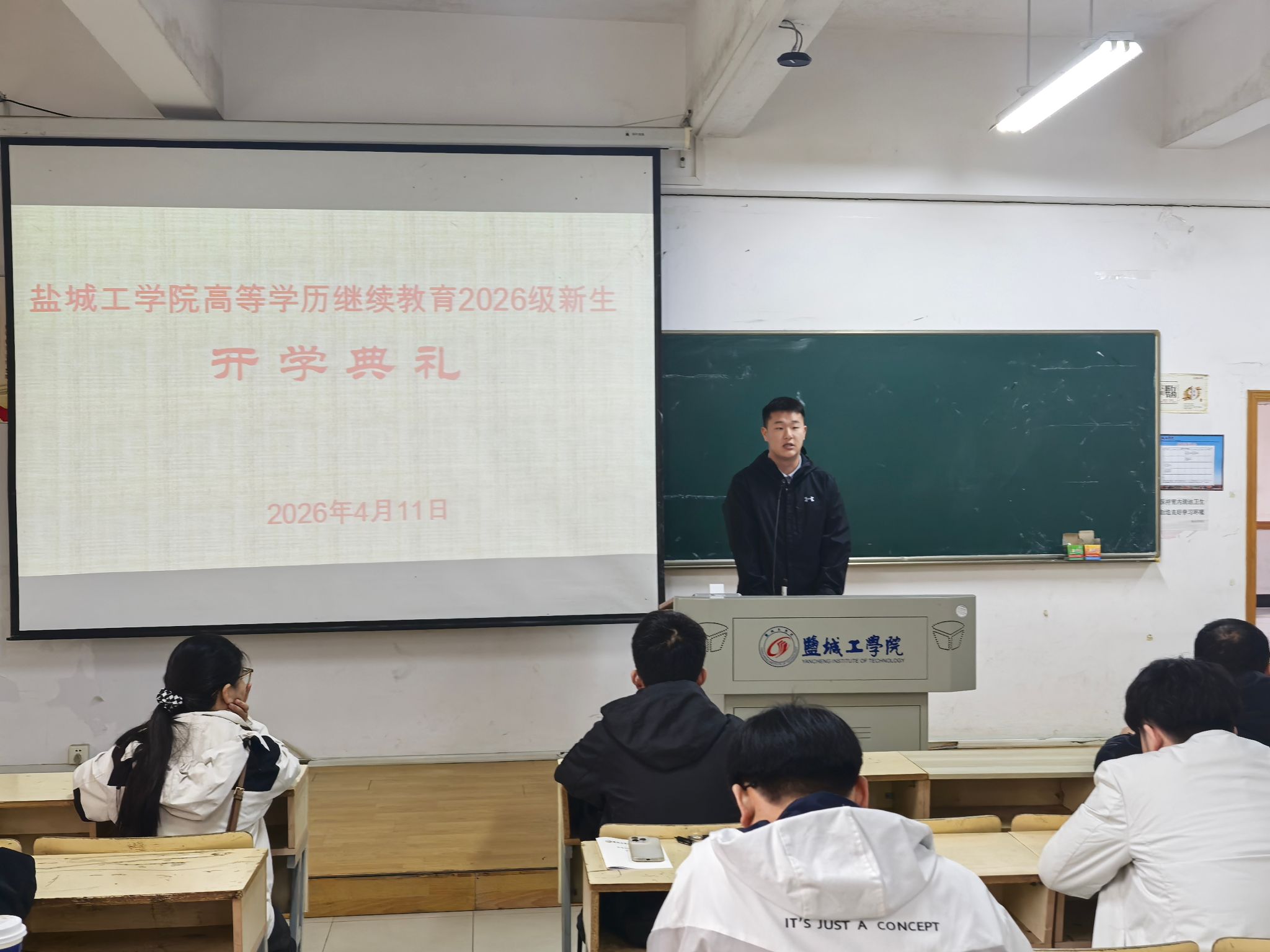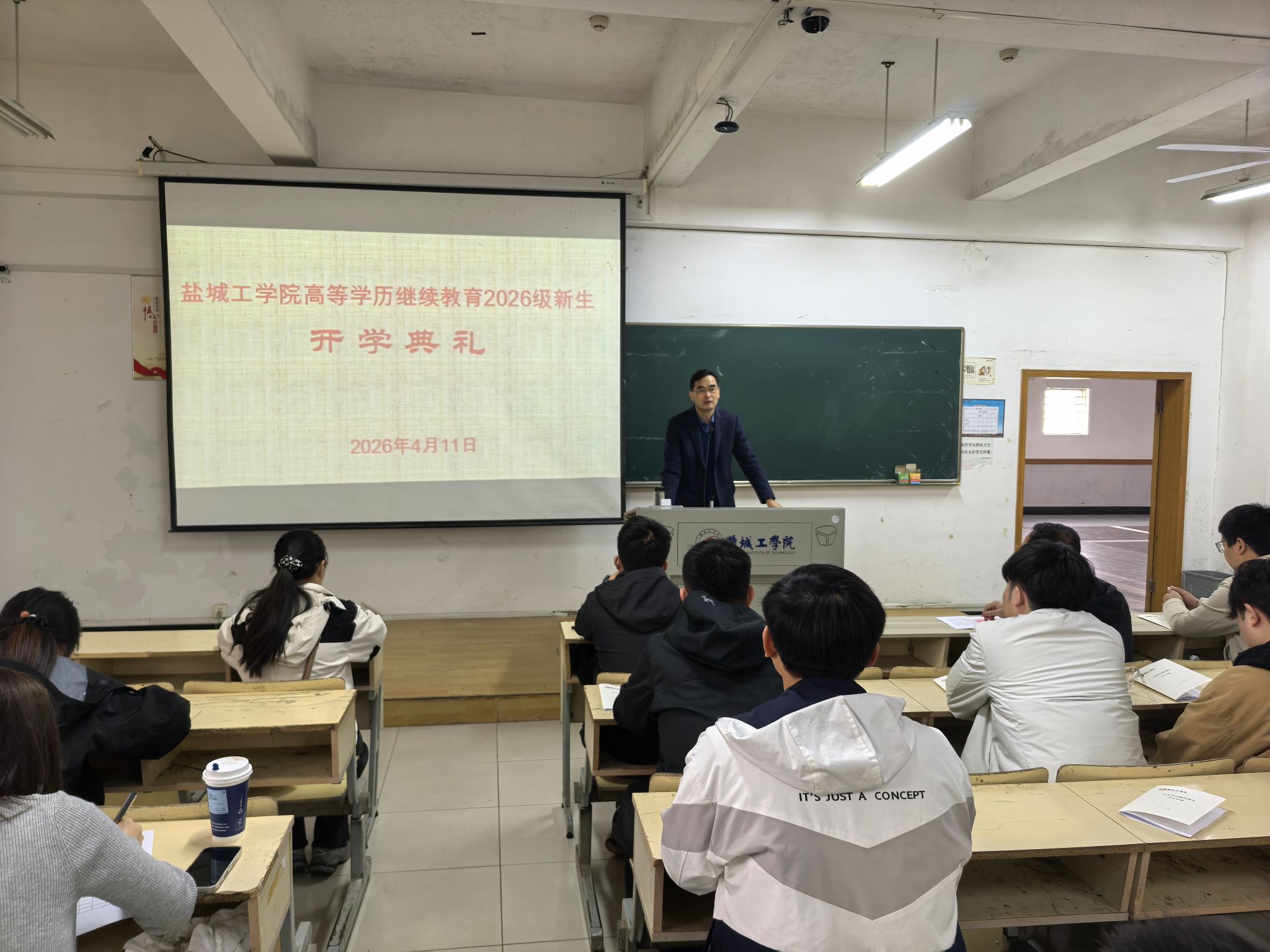 陈院长向2026级新生致以热烈欢迎,简要介绍了盐城工学院的办学概况。他结合当前学历继续教育形势,希望同学们树立牢固的学习意识,珍惜学习机会,自觉遵守继续教育相关管理规定,端正学习态度、规范学习行为。同时鼓励大家坚定学习信心,合理平衡学业、工作与生活,明确目标、迎难而上,确保顺利完成学习任务。