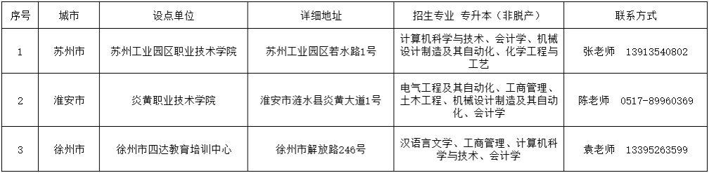 十二、校外教学点招生专业及联系方式
