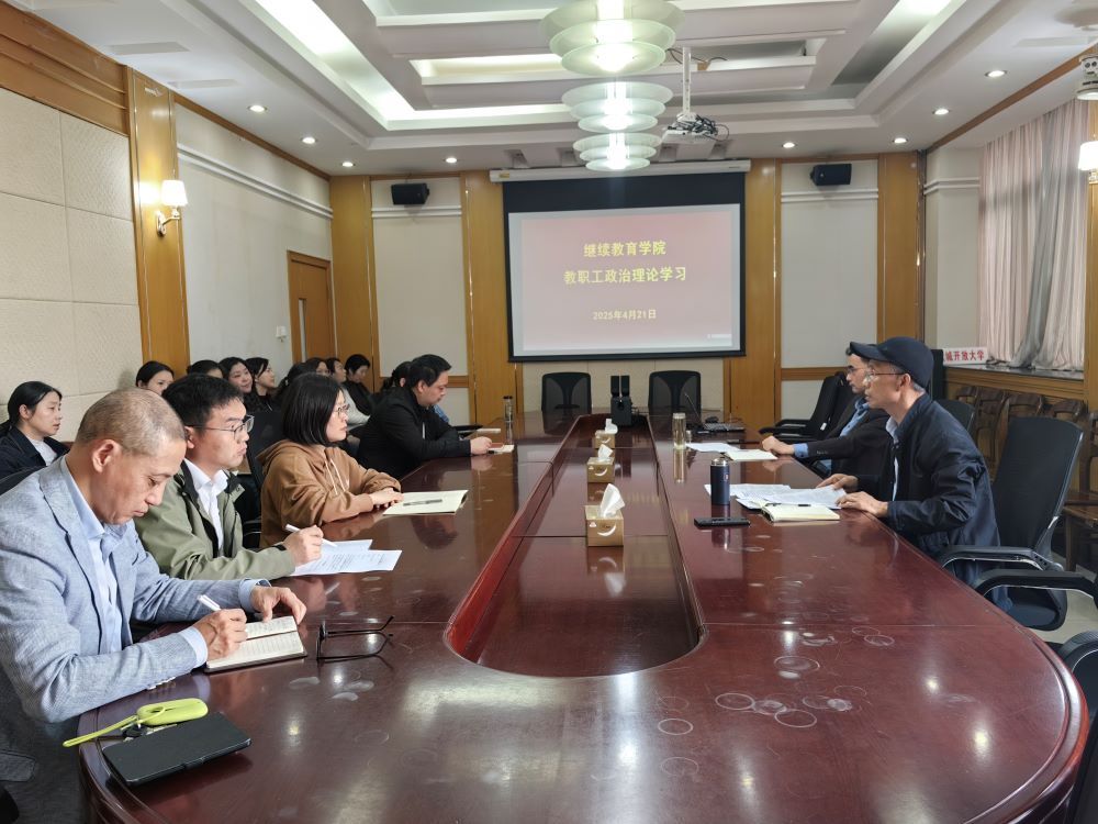 4月21日下午,在北校区图书馆301会议室,继续教育学院开展春学期第五次教职工政治理论学习,校纪委办公室主任陶应军为全体教职工作违反中央八项规定精神问题警示教育。会议由党总支副书记、副院长杨军主持,全体教职工参加。