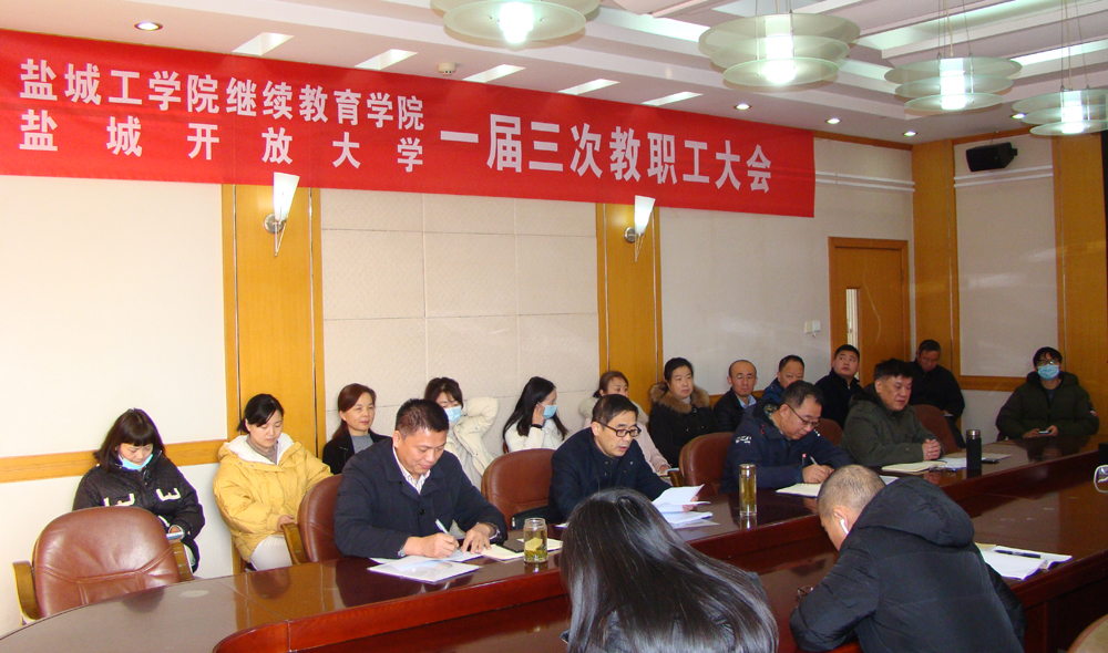 2020年12月16日上午,在北校区图书馆301会议室,继续教育学院、盐城开放大学召开一届三次教职工大会,校工会主席谢毅敏出席会议并致词,分工会全体会员参加会议。会议由学院党总支书记高健主持。