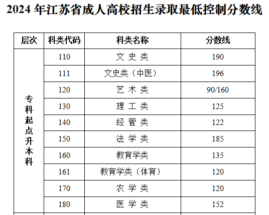 2024年江苏省成人高校招生录取最低控制分数线是根据招生计划和考生成绩分布,按学历层次和科类分别划定,经省教育厅批准,现向社会公布(详见下文)。