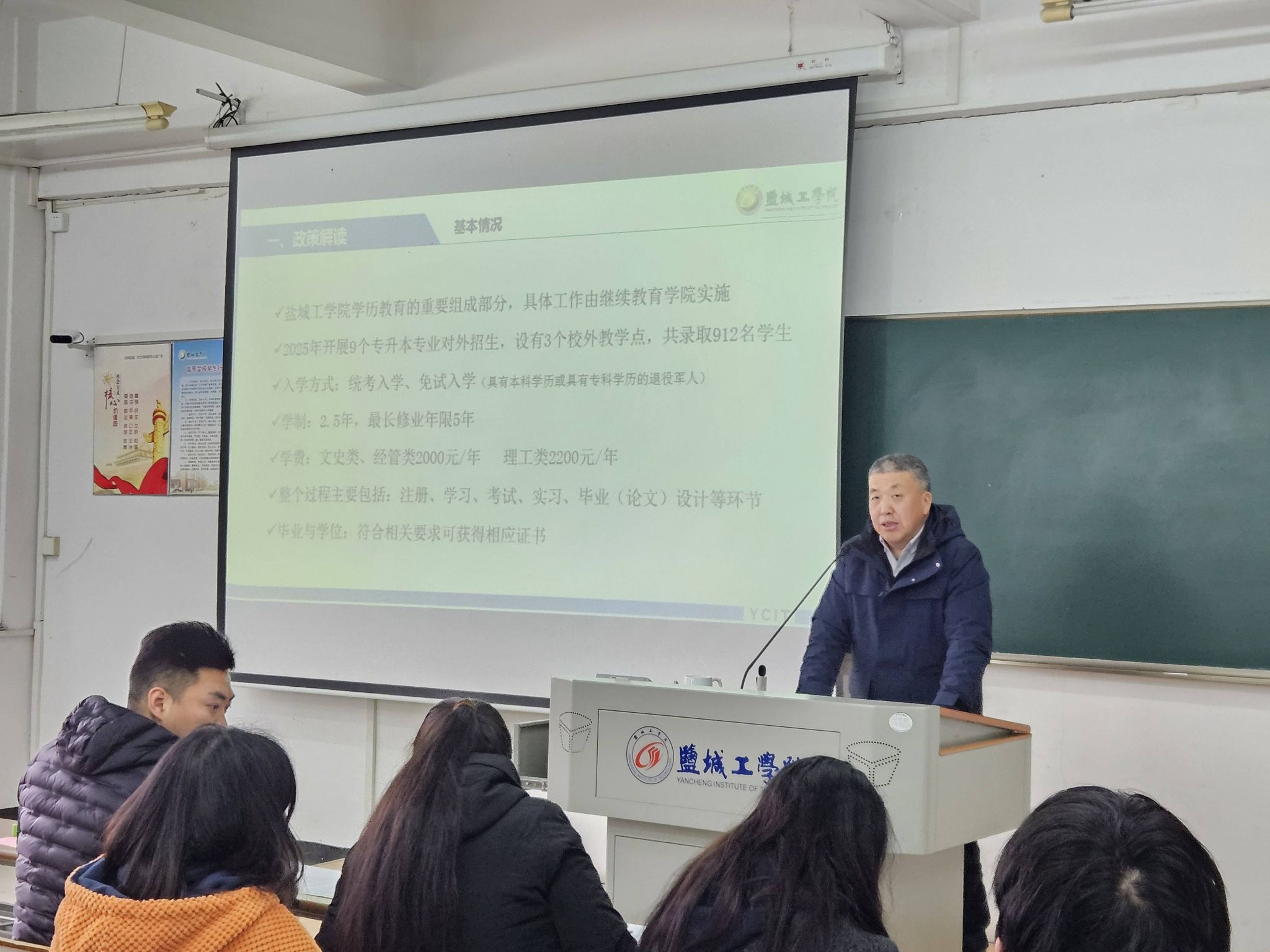 陈志华对2025级新生到我校学习表示热烈欢迎。他向新生介绍了盐城工学院发展概况和当前学历继续教育新形势新要求,要求同学们强化学习意识,珍惜学习机会,遵守学历继续教育规章制度,规范学习行为。他勉励大家在新的学习阶段增强信心,统筹好学业、工作、生活的关系,瞄准目标、克服困难,如期完成学业。谢毅敏就如何克服工学矛盾/处理好面授和线上学习关系等问题,对同学们提出了建议。夏金海从入学注册、缴费、学习、考试、毕业与学位授予等方面对新生进行重点讲解。会后学历教育部工作人员对学生的关于学习管理等问题进行了逐一解答。